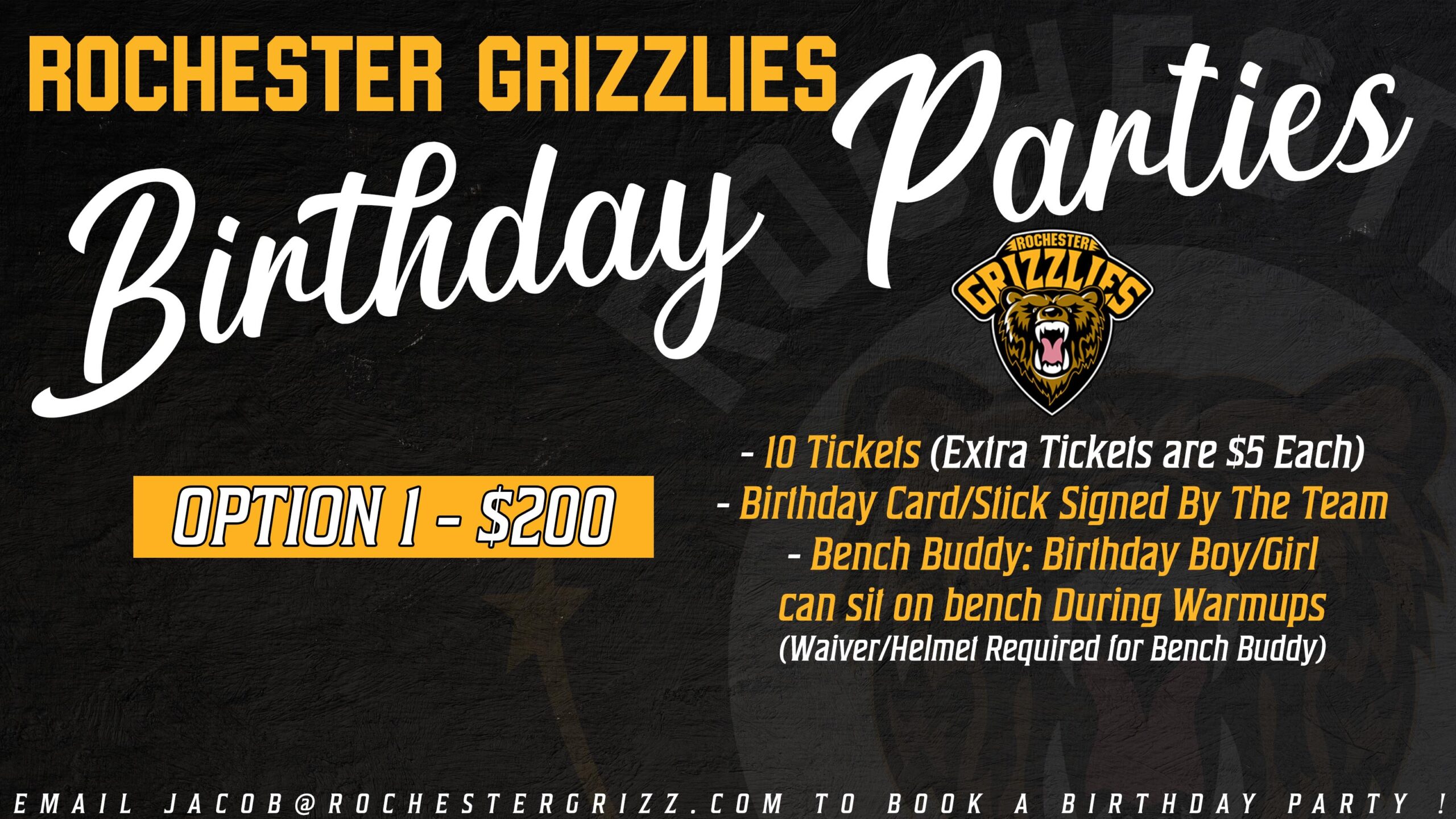 Included: 10 Tickets to the Game, Birthday Boy/Girl will get to be a Bench Buddy for Warmups, a Grizzlies signed Birthday Card, and Special Surprise Gift from team!