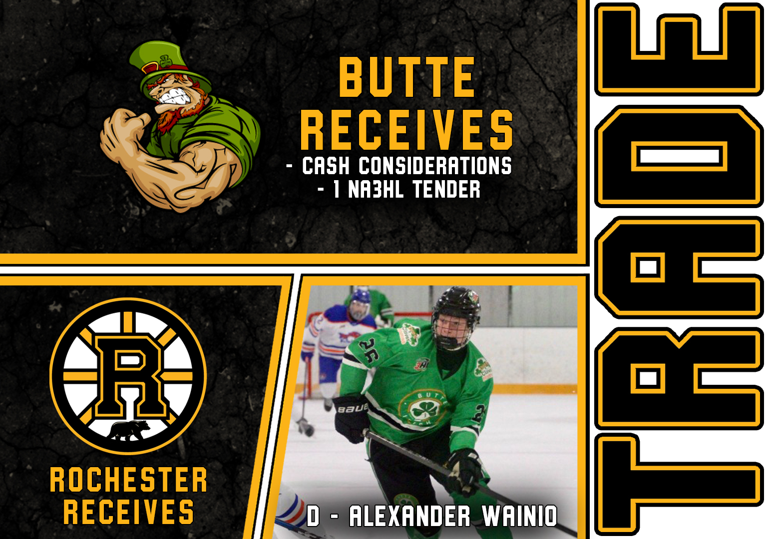 ROCHESTER, Minn. – The Rochester Grizzlies announced today the team has made another move, acquiring Butte’s top defenseman in Alexander Wainio in exchange for an NA3HL Tender and cash considerations.