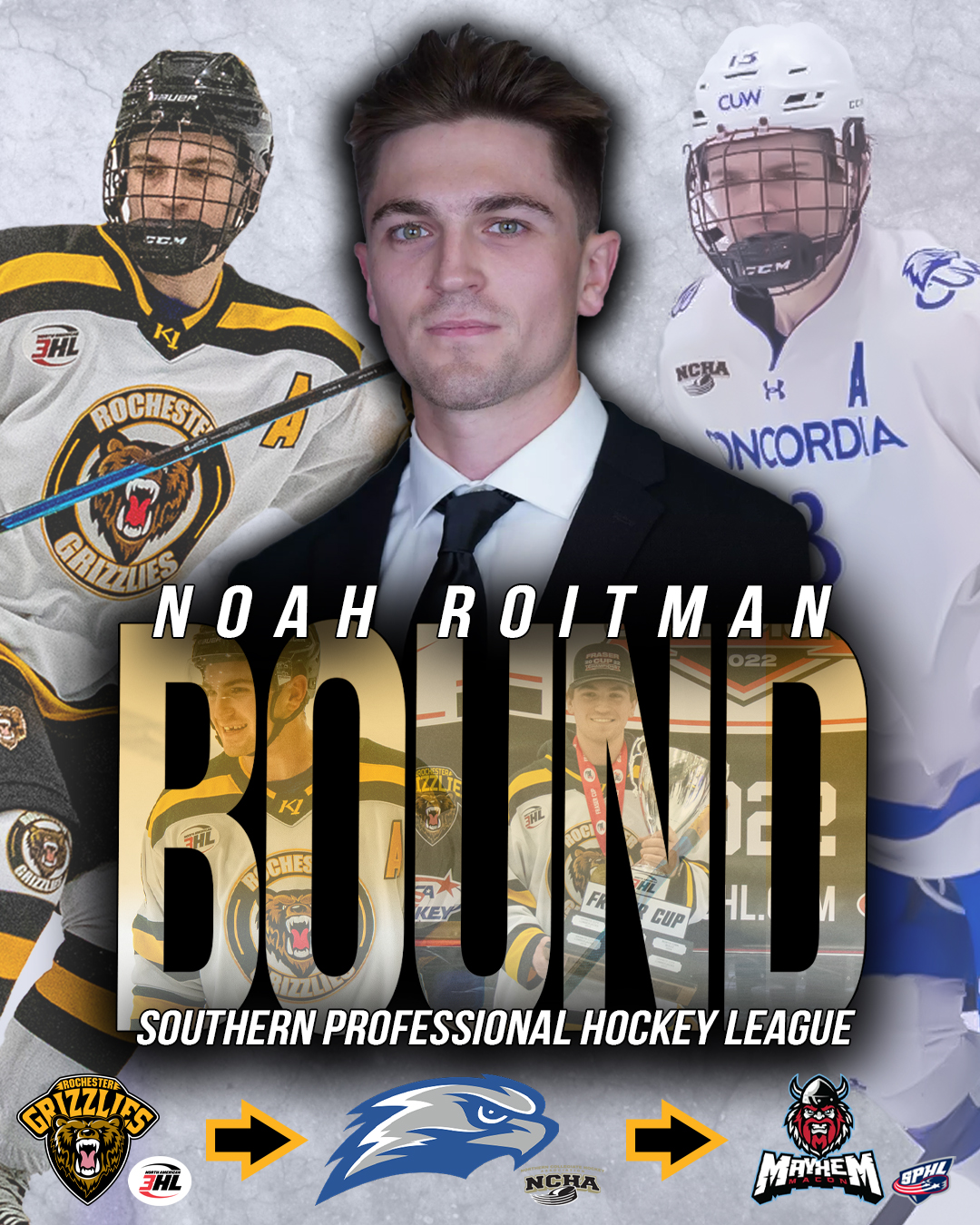 But Roitman’s journey to the SPHL began long before college; in junior hockey with the Rochester Grizzlies of the NA3HL. In the 2021–22 season, Roitman was a pivotal part of the Grizzlies’ run to the NA3HL Fraser Cup National Championship, helping the team lift the league’s top prize and earning NA3HL Defenseman of the Year honors along the way.